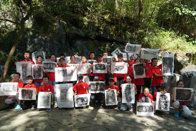 “窮幽深而不盡,坐石上以忘歸”是北宋文學(xué)家王安石用以形容山谷流泉美景的經(jīng)典詩句。在這里,營員們不僅體驗到青山綠水木橋溪流構(gòu)成的靜謐之美,還感受到了石刻上的文化與藝術(shù):在長達(dá)1500余米的山谷兩岸的石壁上,自唐代至今留存的名家文人石刻將近400方,琳瑯滿目,美不勝收。走在歷代書法藝術(shù)長廊之中,仿佛再現(xiàn)了古代文人墨客徜徉于此,物我兩忘,題辭勒石的場景……營員們還合作體驗了拓片的制作,在鍛煉動手能力的同時親近了中國傳統(tǒng)文化,感受了中國書法魅力。