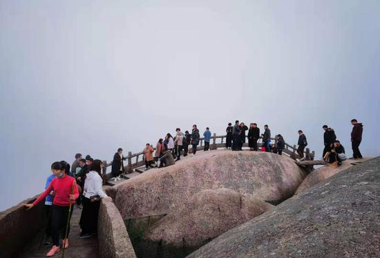 初春的天柱山秀中藏媚,景色宜人。天柱峰猶抱琵琶半遮面,時而被云霧籠罩,時而露出偉岸真容,景象萬千,美輪美奐。中午時分,更是驚現(xiàn)“佛光”奇觀,游客紛紛發(fā)出歡呼,共同祝福偉大的祖國牛氣沖天、繁榮富強。